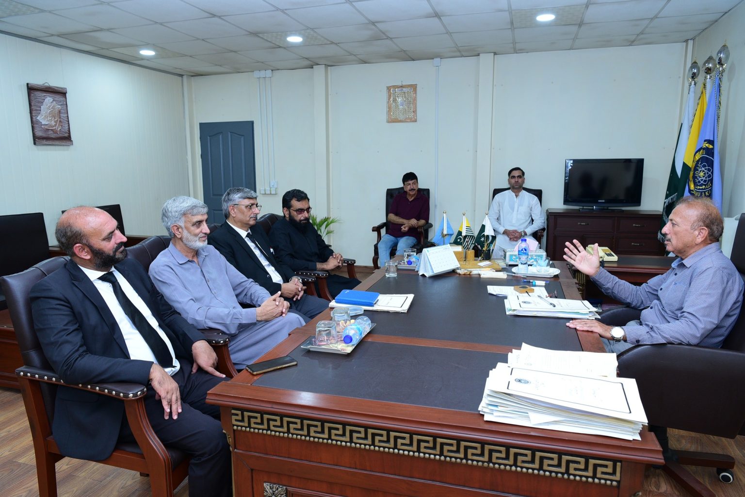 The committee also met with Vice-Chancellor Prof. Dr. Muhammad Kaleem Abbasi and faculty members, including Dr. Hasnaat Gillani, Dr. Murad Shah, and Ilyas Afridi Advocate. Registrar, Meritorious Prof. Dr. Ghulam Murtaza also attended the meeting. In their meeting, they discussed various opportunities to enhance academic activities at UAJK. Vice-Chancellor Dr. Kaleem Abbasi briefed the committee on the university’s academic achievements and ongoing developments across different campuses. The committee members appreciated the Vice-Chancellor and the management for their dedicated efforts towards the continuous advancement of the institution.