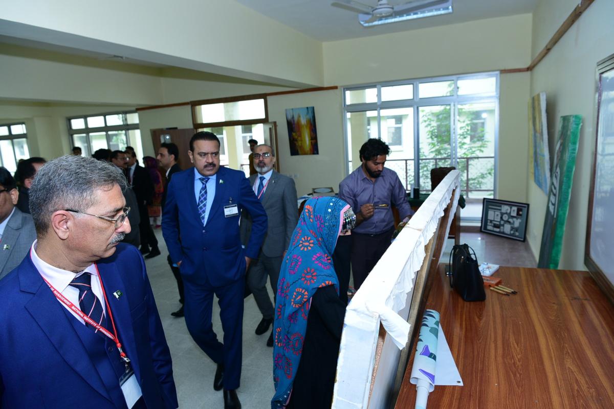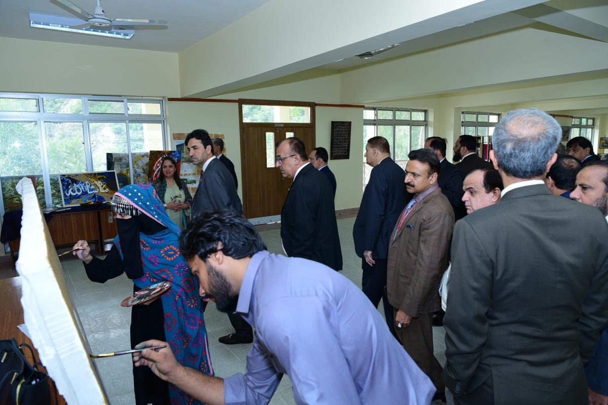 Participants of the 36th Senior Management Course (SMC) from the National Institute of Management, Karachi, recently visited the Art & Design Department at the University of Azad Jammu and Kashmir (UAJK), King Abdullah Campus. They were warmly welcomed by the Chairperson of the Department, Dr. Rukhsana Said, along with the dedicated faculty and talented students. The visitors were given a guided tour of the department, where they were introduced to a variety of cultural masterpieces crafted by the students, sparking their deep admiration and appreciation.
