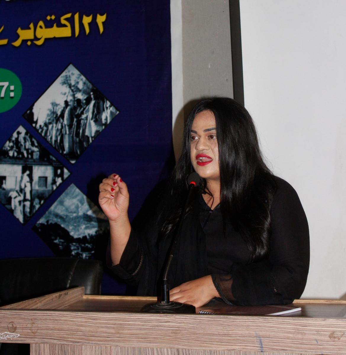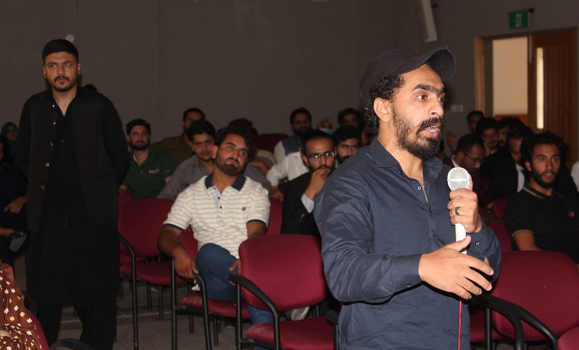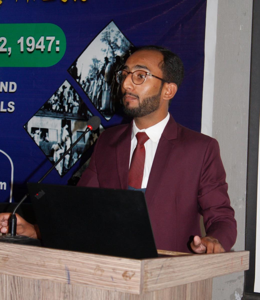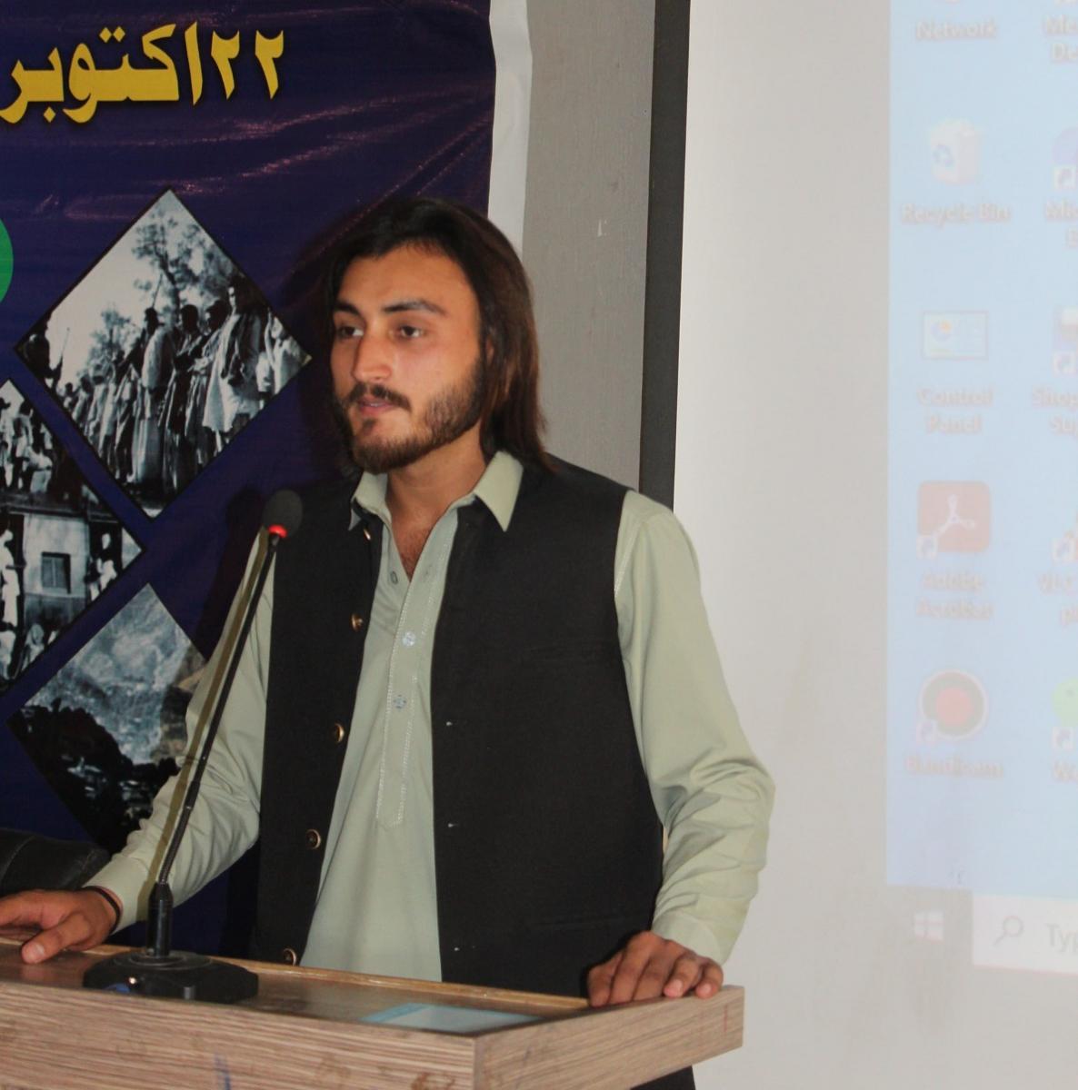 The seminar further featured insightful presentations by 𝐌𝐫. 𝐒𝐢𝐤𝐚𝐧𝐝𝐞𝐫 𝐇𝐚𝐛𝐢𝐛 𝐌𝐢𝐫 𝐚𝐧𝐝 𝐃𝐫. 𝐑𝐚𝐛𝐞𝐞, who meticulously dismantled the myths surrounding October 22, using well-researched facts and independent sources to clarify historical inaccuracies. A group of students from the Department of International Relations—𝐀𝐡𝐭𝐢𝐬𝐡𝐚𝐦 𝐀𝐫𝐢𝐟 𝐊𝐡𝐚𝐧 (BS IR, 8th Semester), 𝐌𝐮𝐛𝐚𝐬𝐡𝐢𝐫 𝐀𝐳𝐢𝐳 (BS IR, 5th Semester), 𝐀𝐧𝐚𝐲𝐚 𝐁𝐮𝐭𝐭 (BS IR, 5th Semester), 𝐙𝐚𝐢𝐧𝐚𝐛 𝐁𝐢𝐛𝐢 (BS IR, 3rd Semester), and 𝐍𝐨𝐨𝐫 𝐔𝐥 𝐄𝐦𝐚𝐧 (BS IR, 3rd Semester)—delivered research presentations on key aspects of the Jammu and Kashmir conflict. They offered detailed analyses on topics such as the Jammu Massacre, the historical context of Kashmir’s freedom struggle, the liberation of Muzaffarabad from an international law perspective, and the issue of settler colonialism in Kashmir.