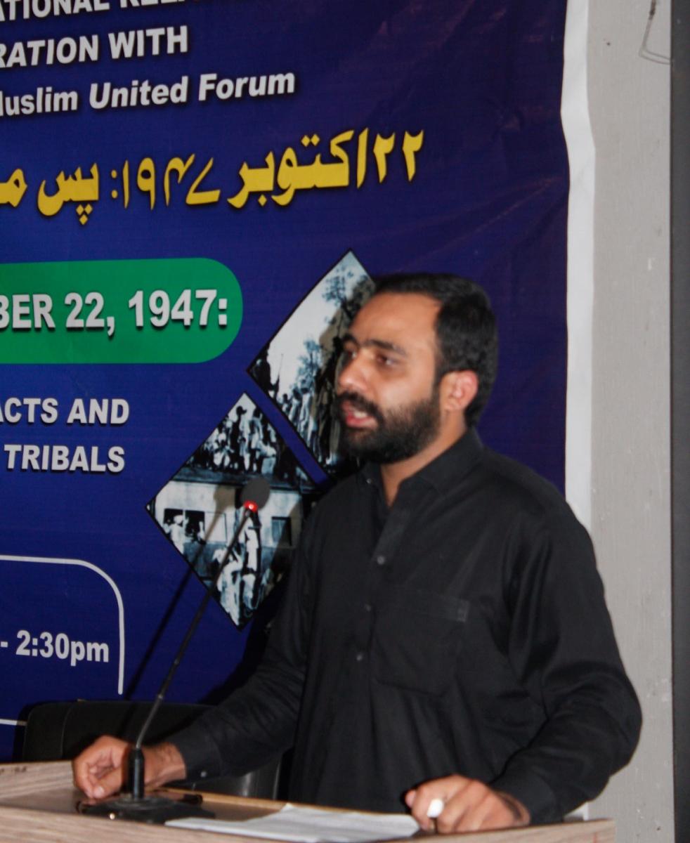 The seminar featured a prominent virtual address by 𝐌𝐫. 𝐈𝐦𝐭𝐢𝐚𝐳 𝐊𝐚𝐦𝐚𝐥, President and Founder of the Jammu and Kashmir Muslim United Forum, who debunked common myths and propaganda surrounding the tribal entry into Kashmir. He provided an in-depth analysis of the misinformation perpetuated about the events of October 22, 1947. Following this, 𝐀𝐝𝐯𝐨𝐜𝐚𝐭𝐞 𝐙𝐚𝐤𝐢 𝐉𝐚𝐛𝐛𝐚𝐫 delivered a compelling lecture on the critical events that led to the tribal intervention in Kashmir. He exposed how the Maharaja violated the standstill agreement with Pakistan while simultaneously seeking military support from India. Advocate Jabbar also highlighted the complicity of the Indian National Congress leadership and Lord Mountbatten, the last Viceroy of India, in suppressing the legitimate aspirations of the Kashmiri people and illegally occupying the region.