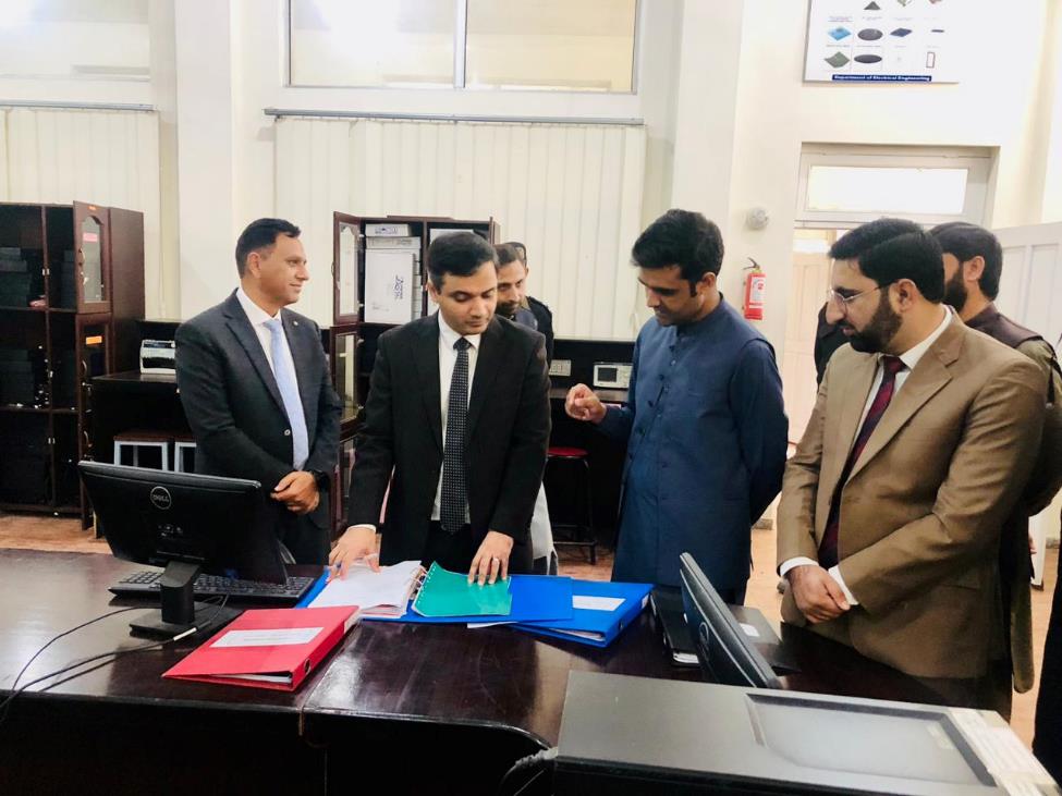 On November 06, 2023, The department of Electrical Engineering had the privilege of hosting a distinguished team from the Pakistan Engineering Council (PEC). This visit was a significant milestone for our institution and the Department of Electrical Engineering. The PEC team, led by Engr. Prof. Dr. Usman Zabit (Convener) and Engr. Taha Ahmed Khan (PEC Representative, PEC HQ Islamabad), conducted an OBA (Outcome-Based Accreditation) based visit to evaluate the B.Sc. Electrical Engineering program.