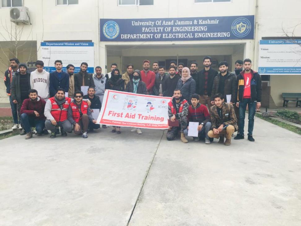 Speaking on the occasion, Dr. Khalid Khawaja, Head of the Department of EE, UAJK said that to be a responsible part of society, the students of every department need to learn the skills for responding to and providing initial care for injuries or illnesses in emergencies. He thanked all the officials and trainers of PRSC as well as Dr. Ausnain Naveed (Director of Career Placement Center, EE) and Dr. Sheeraz Iqbal (Director of Industrial Liaison Office, EE) for jointly organizing the important session. After the session, certificates were distributed among the participants.