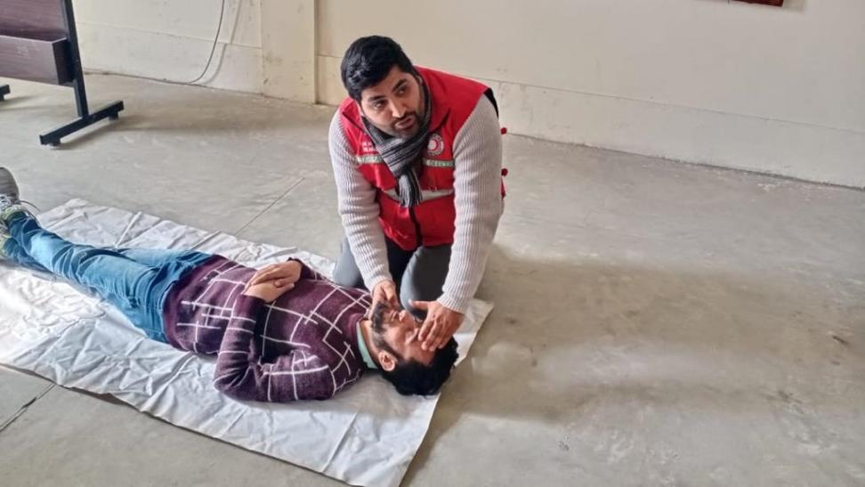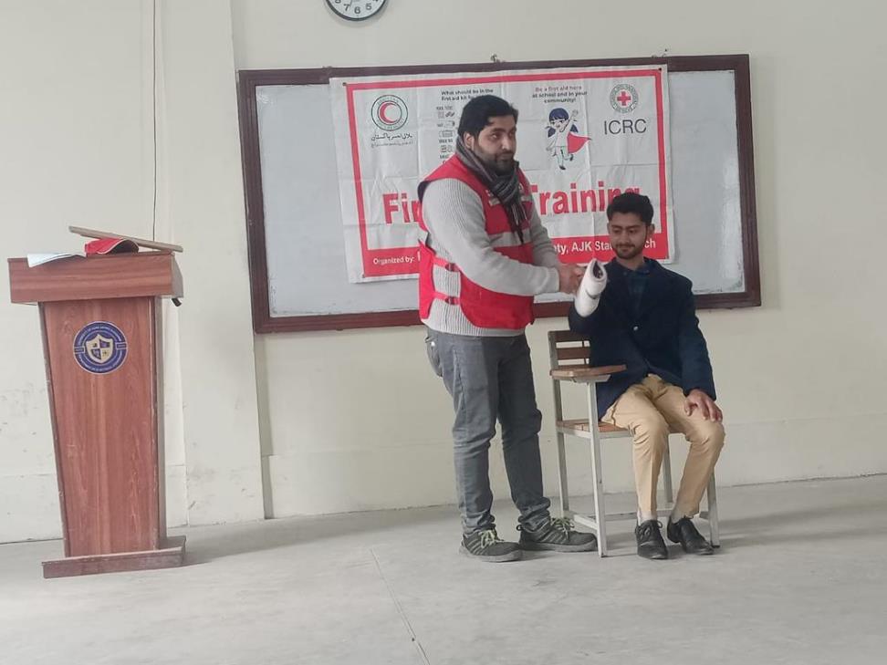 Electrical Engineering Dept UAJK-Official in collaboration with the Pakistan Red Crescent Society (PRCS AJK State Branch) organized a two-day training session (January 18th and 19th, 2023) on First Aid Emergency Skills for the students of the department. In this training, the students learned how to respond to emergencies such as performing CPR, Controlling Bleeding, and treating Burns and Broken Bones injuries. The trainer, Mr. Tahmass Durrani from PRCS admired the interest of the students in the training. Mr. Yasir Josh Program Coordinator FA & PHECP, Mr. Adnan Qureshi Media & Communication Manager, and other team members of PRCS also visited different labs of the department and appreciated the measures taken by the EED for providing first-aid in the emergencies.