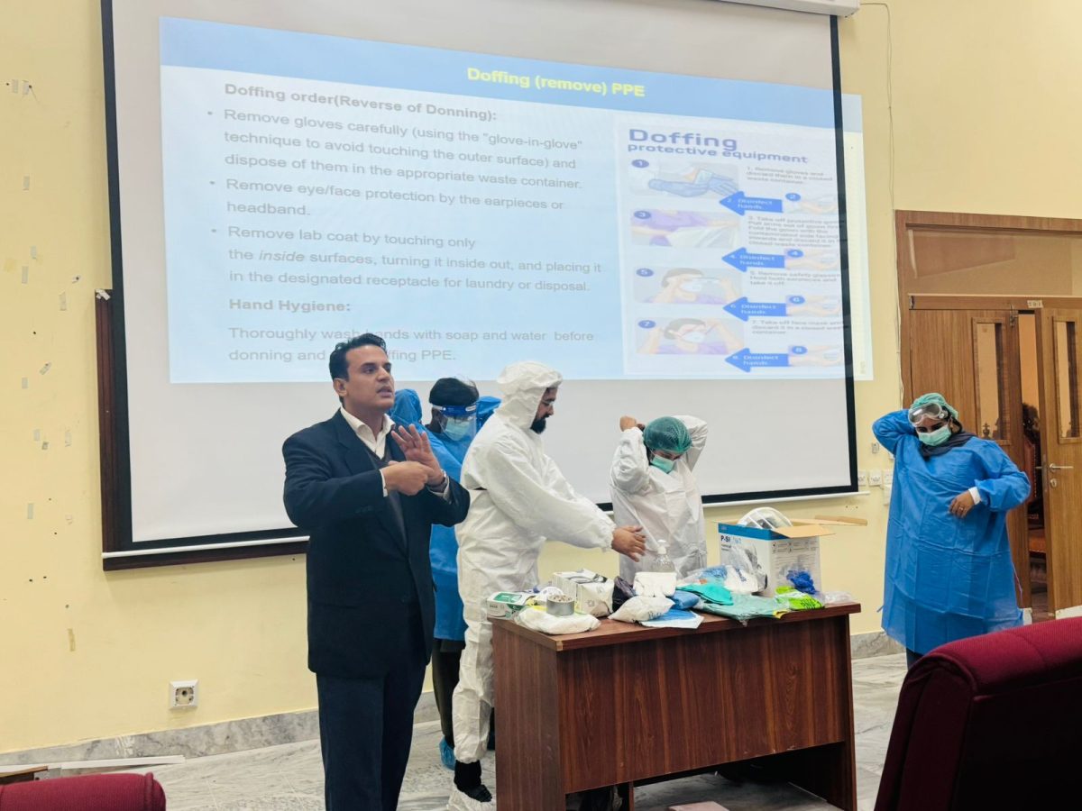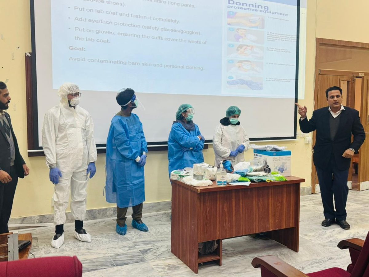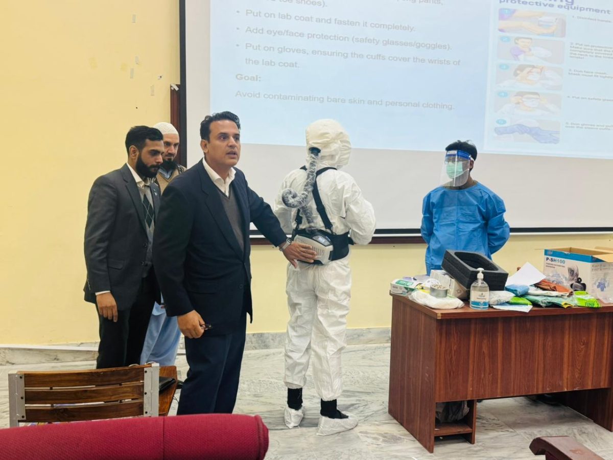 A distinguished delegation from DESTO BRC, Prof. Dr. Saifullah Khan, Dr. Irfan Ali, and Dr. Ali Hassan, led the sessions. The experts delivered highly insightful lectures and conducted hands-on, practical, and field training, equipping participants with modern biosurveillance techniques, their operational applications, and the latest trends in biological monitoring.