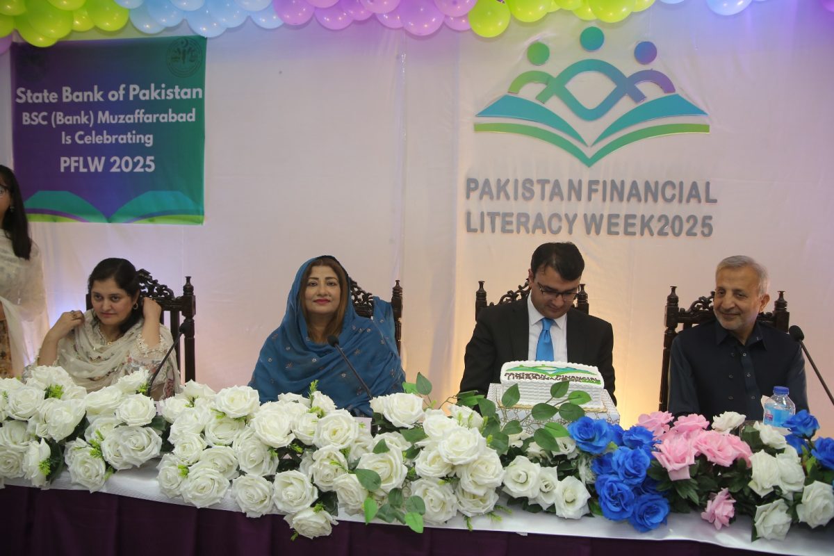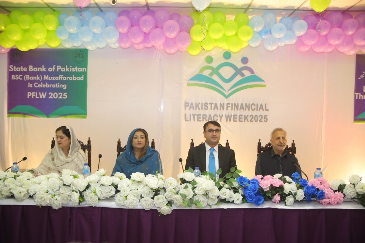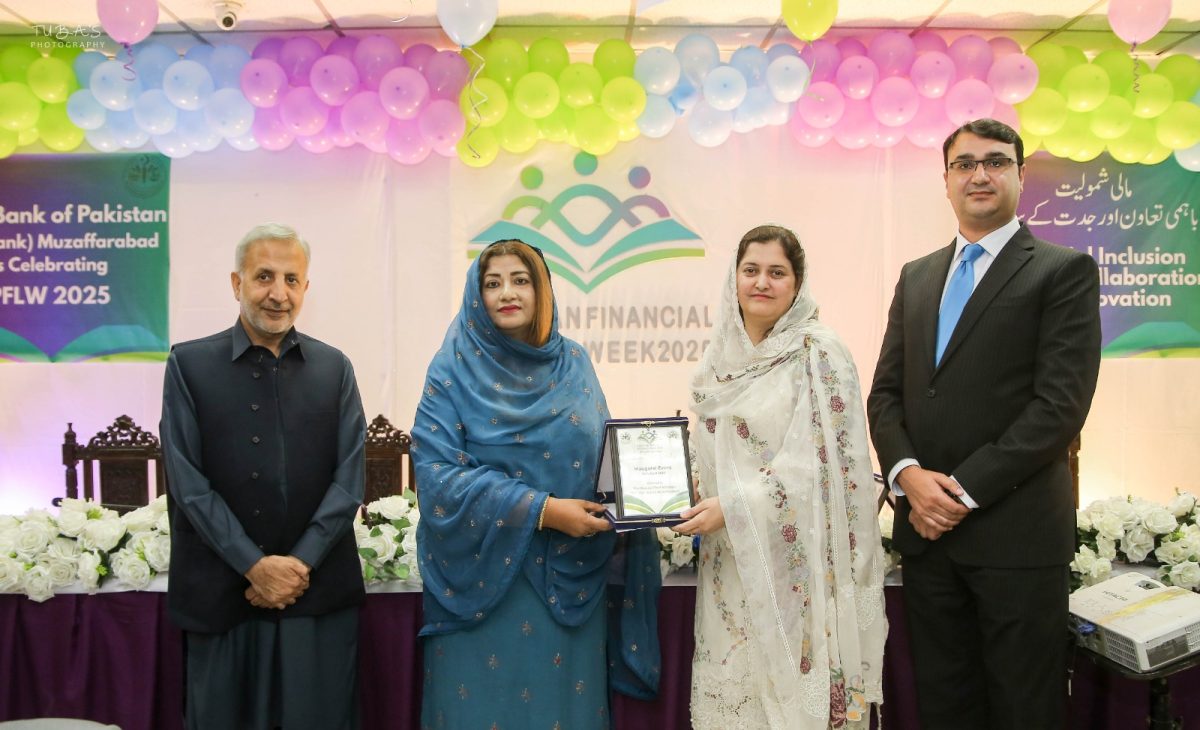 The event was also attended by the AJK Minister for Small Industries, Mrs. Taqdees Gilani, who reiterated the government’s commitment to promoting financial inclusion across the region. Organized under the theme ‘Financial Inclusion through Digital Means,’ PFLW 2025 aims to create awareness among the public regarding digital banking, responsible financial behavior, and access to modern financial services.
