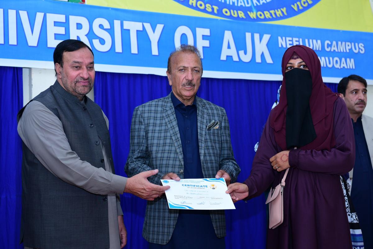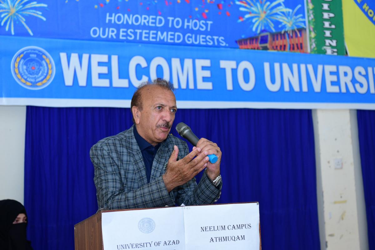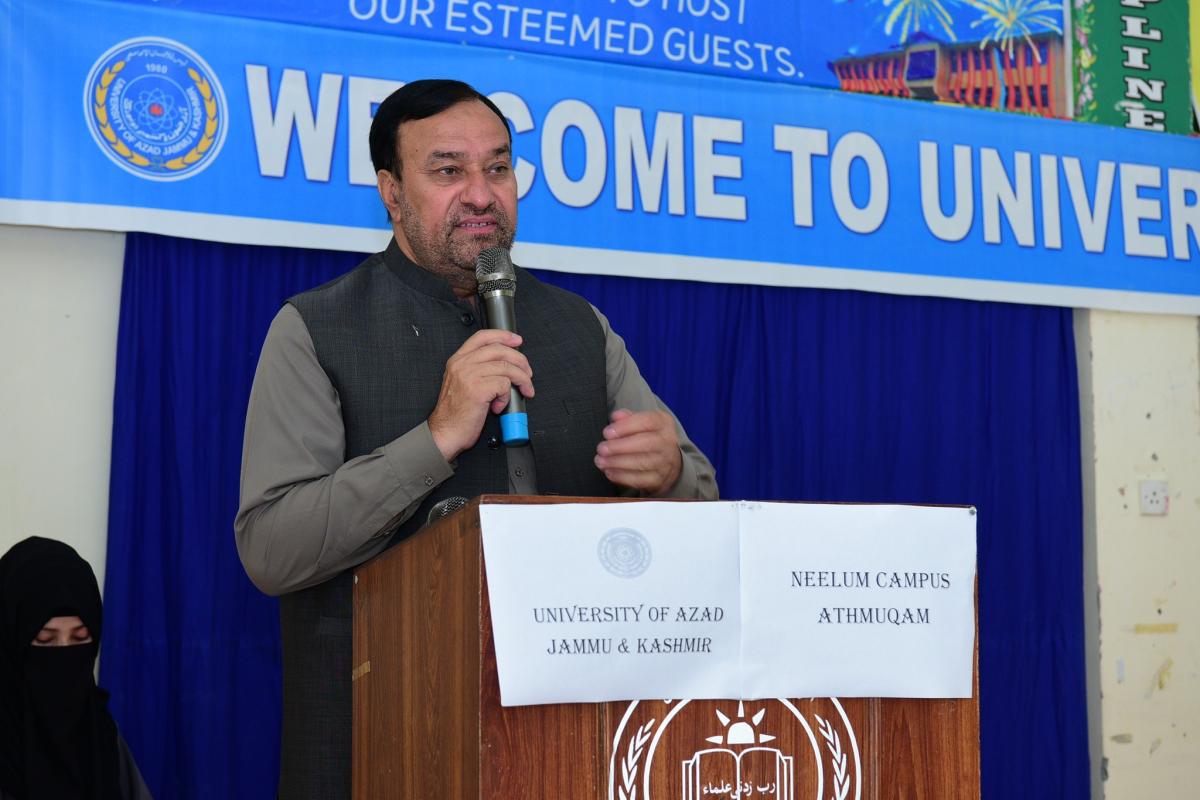 In a vibrant ceremony at Neelum Campus UAJK, Athmuqam, the Honorable Minister for Law, Justice, and Parliamentary Affairs, Mian Abdul Waheed, reflected on the remarkable journey of the campus. The Minister nostalgically recalled the early days of 2013 when Neelum Campus was just a small sapling planted in Authmuqam. Today, it has flourished into a premier institution advancing higher education in the valley.