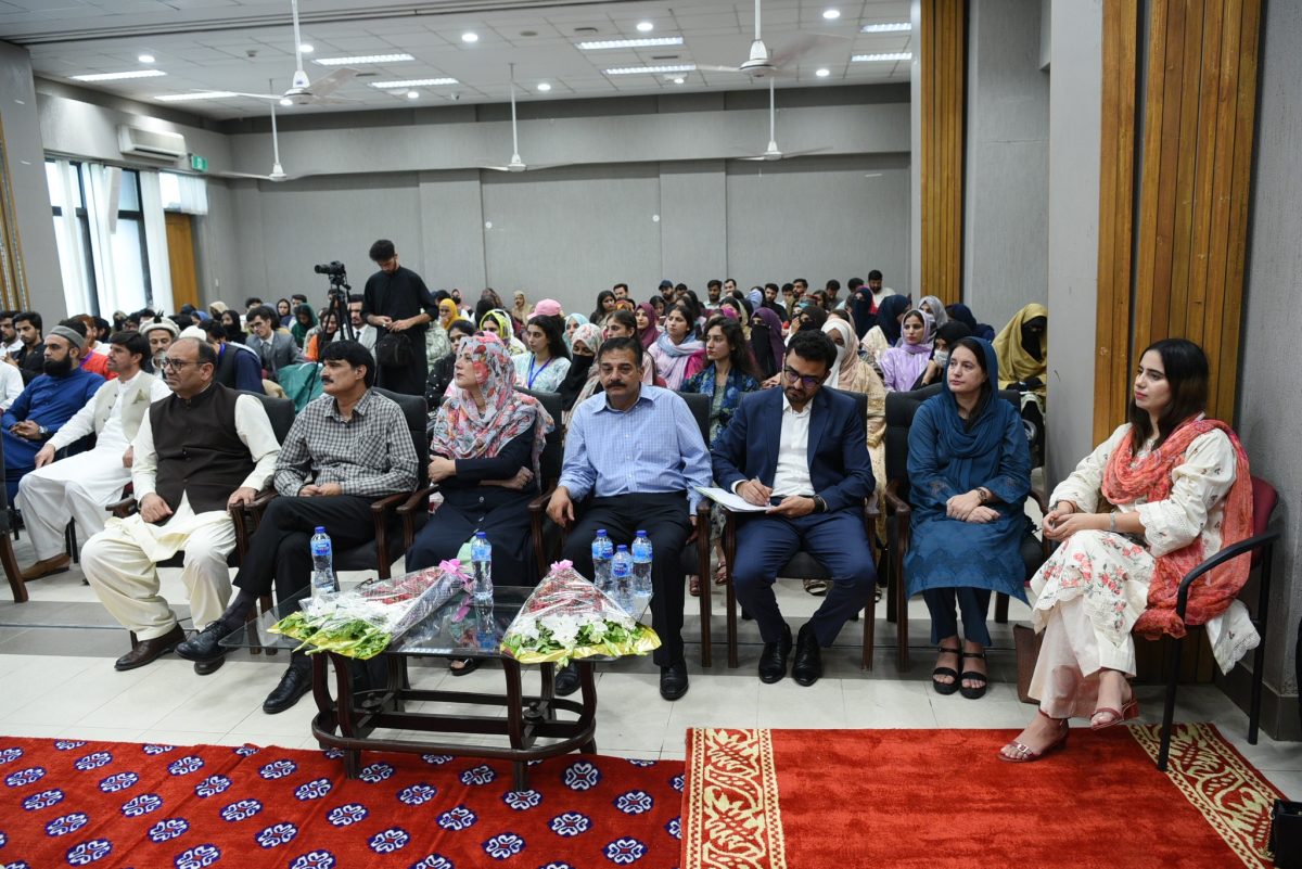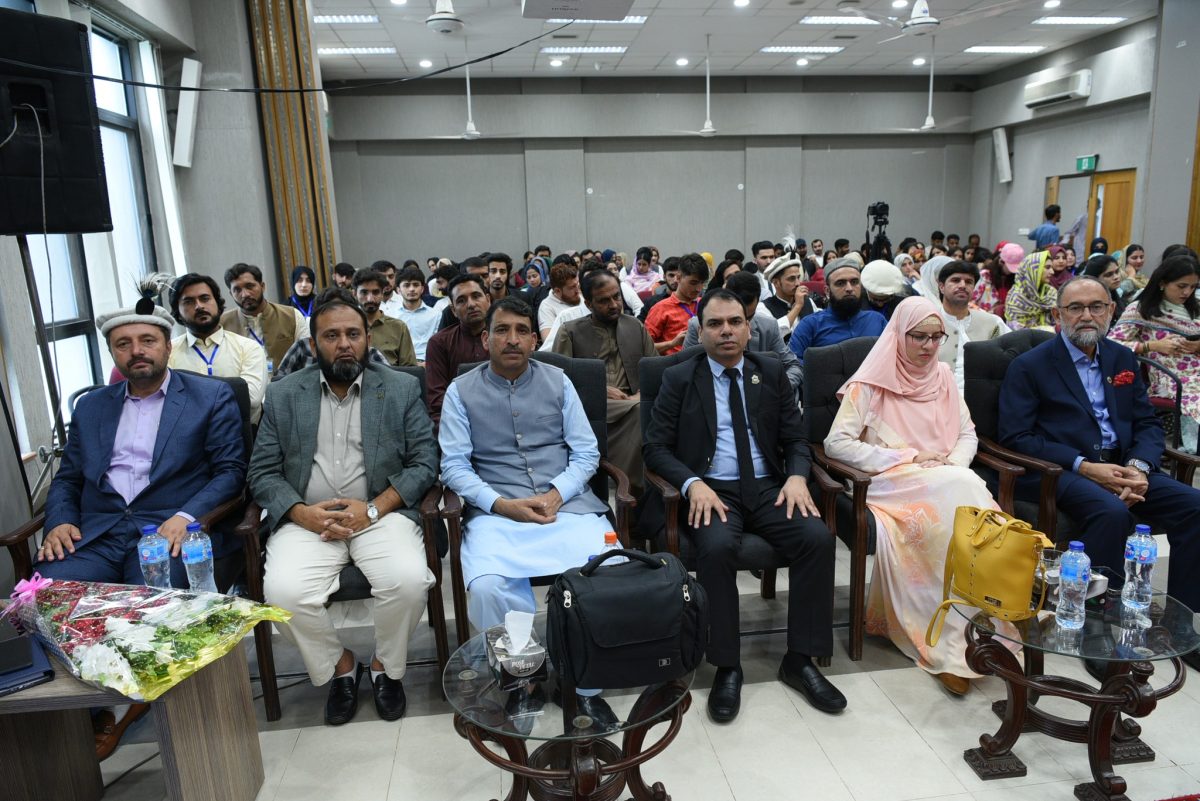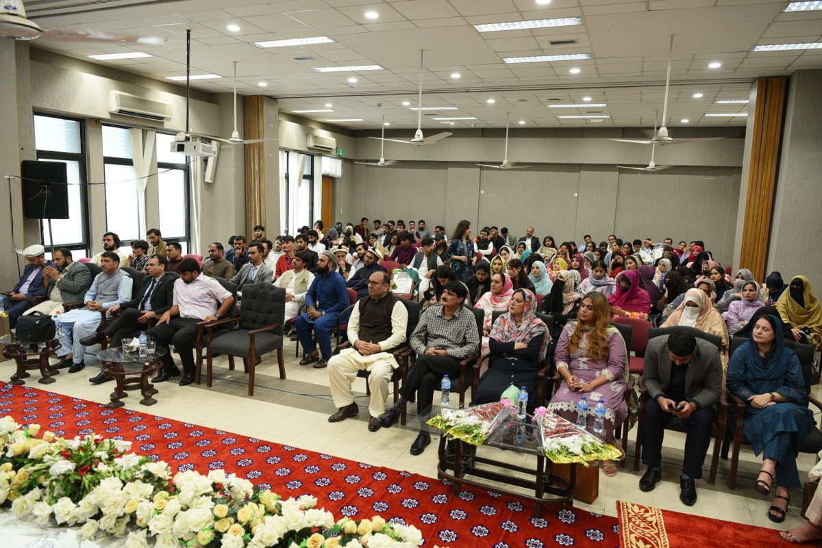 The ceremony was graced by Federal Minister of State for Education and Professional Training Mrs. Wajiha Qammar as the Chief Guest. Distinguished speakers included Vice-Chancellor Nasir Jamal Khattak, Prof. Dr. Zia ul Haq, Director General Islamic Research Institute, Dr. Muhammad Rustam, Deputy Director, and Dr. Imtiaz Awan, Director Jhelum Valley Campus.