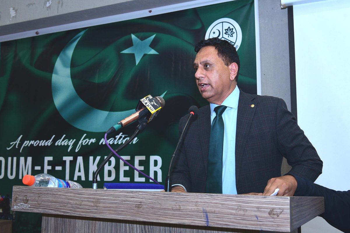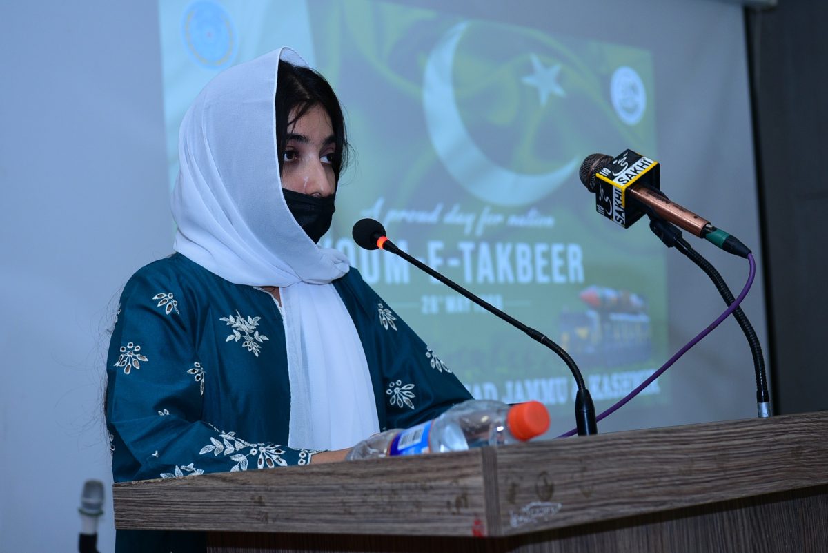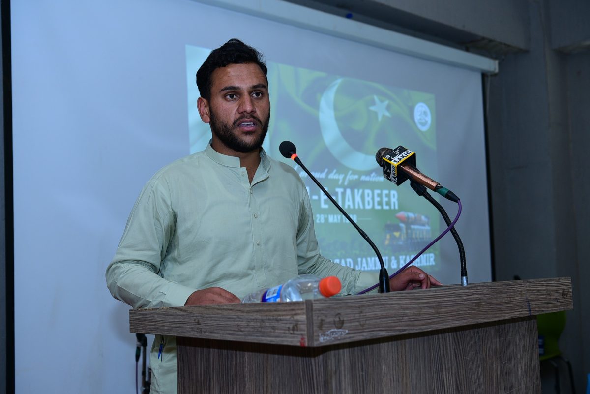 Vice-Chancellor Prof. Dr. Nadeem Haider Bukhari addressed the gathering and reflected on the historic significance of Youm-e-Takbeer, calling it a reminder of Pakistan’s unwavering resolve to safeguard its sovereignty. He applauded the active involvement of students and commended the organizing team for making the event a memorable success. The event was skillfully moderated by Mr. Mehtab Alam, Lecturer in the Urdu Department.