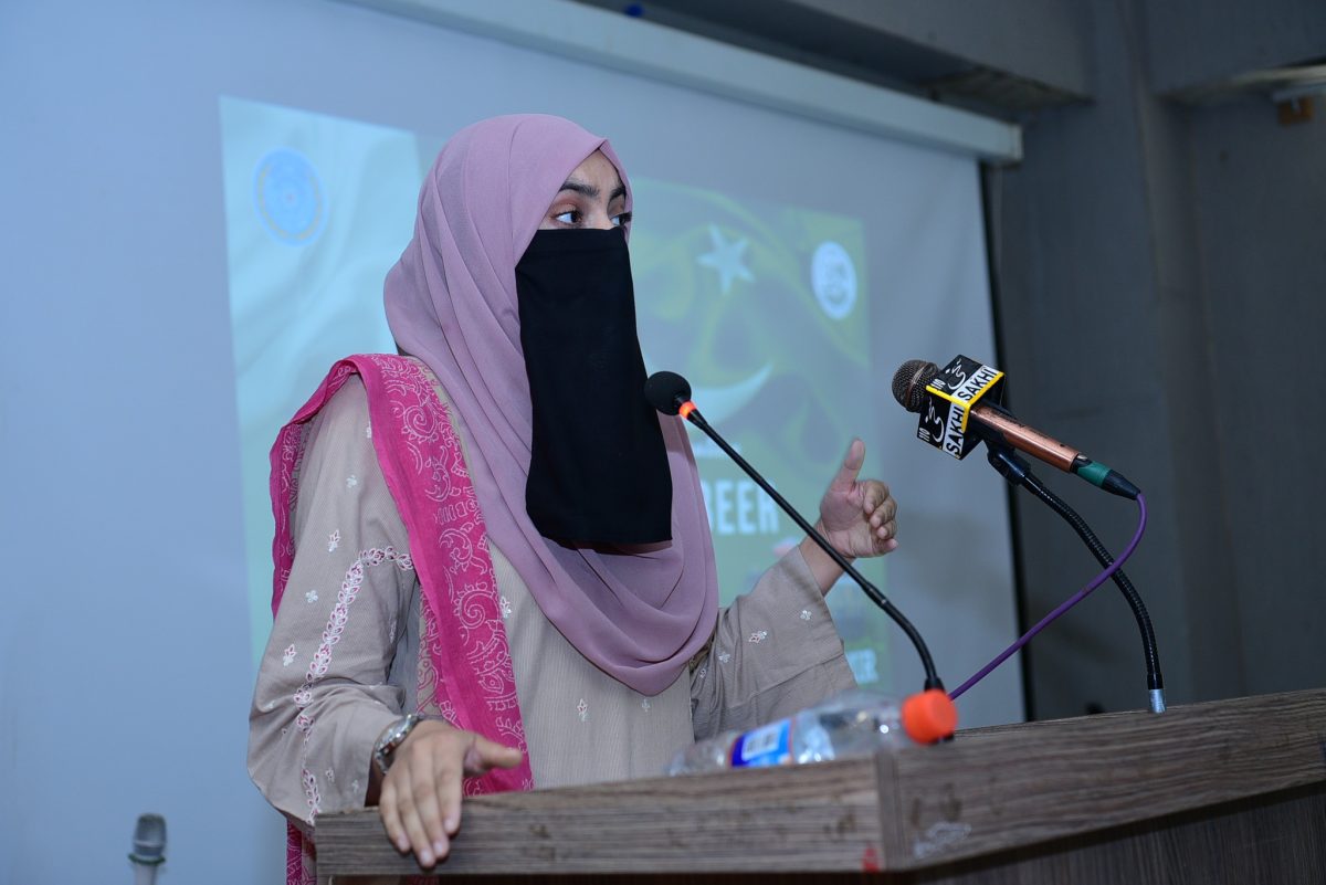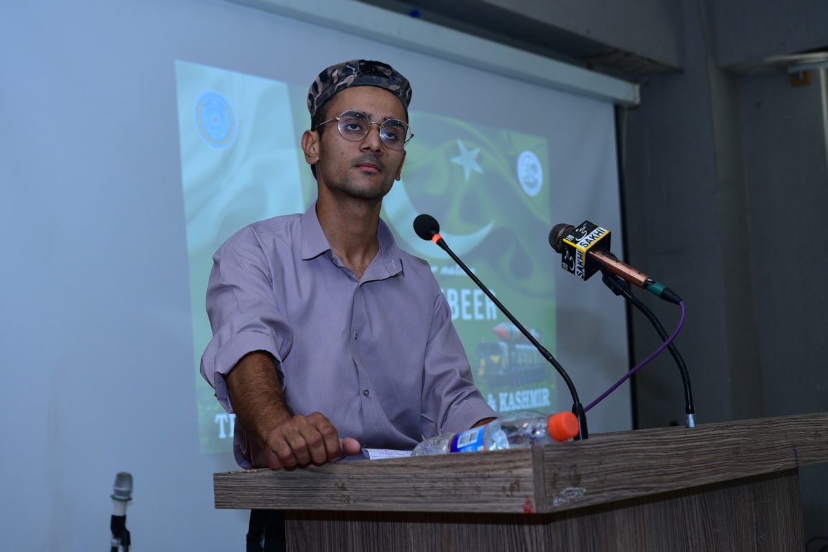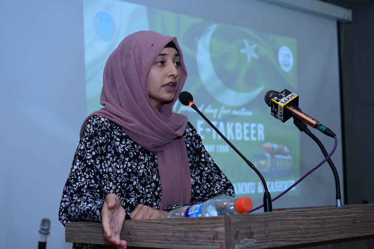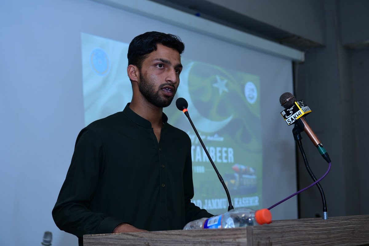 Vice-Chancellor Prof. Dr. Nadeem Haider Bukhari addressed the gathering and reflected on the historic significance of Youm-e-Takbeer, calling it a reminder of Pakistan’s unwavering resolve to safeguard its sovereignty. He applauded the active involvement of students and commended the organizing team for making the event a memorable success. The event was skillfully moderated by Mr. Mehtab Alam, Lecturer in the Urdu Department.