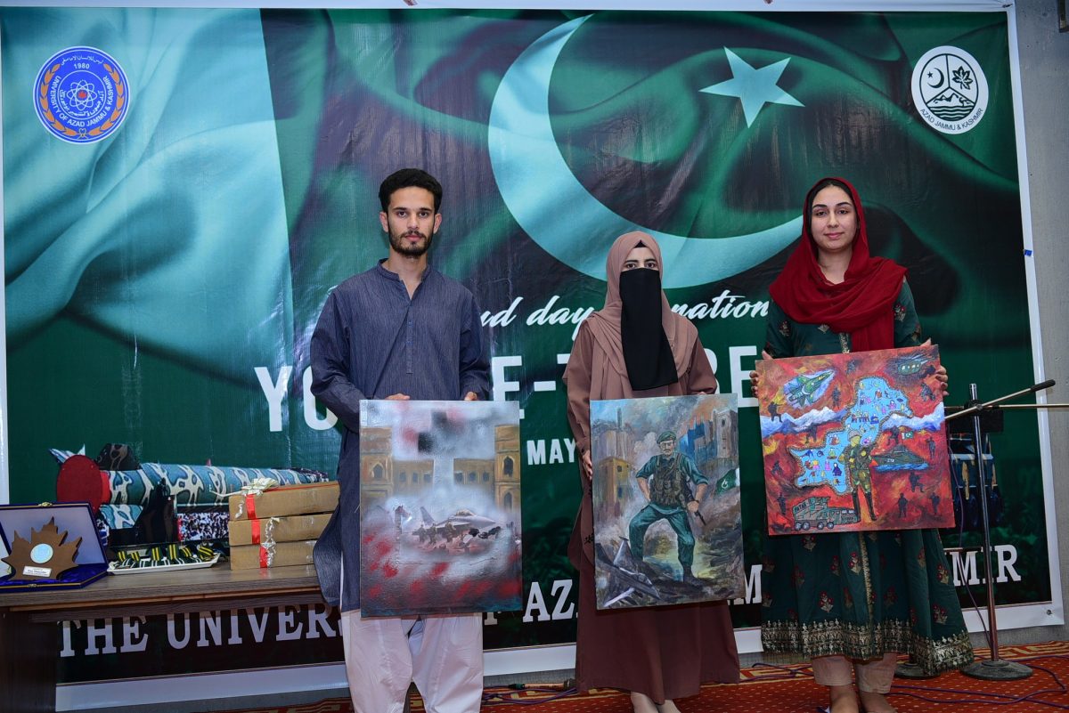 Students from UAJK and the University of Kotli, Mirpur University of Science and Technology (MUST), University of Poonch Rawalakot, Women University Bagh, University of Bhimber and others participated in a vibrant array of inter-university competitions, including English and Urdu declamation contests, painting, documentary screenings, essay writing, and multiple sports events. The event also featured stirring patriotic songs presented by the students of the Department of Art and Design, creating an atmosphere full of pride and national spirit.