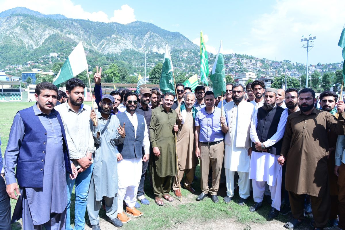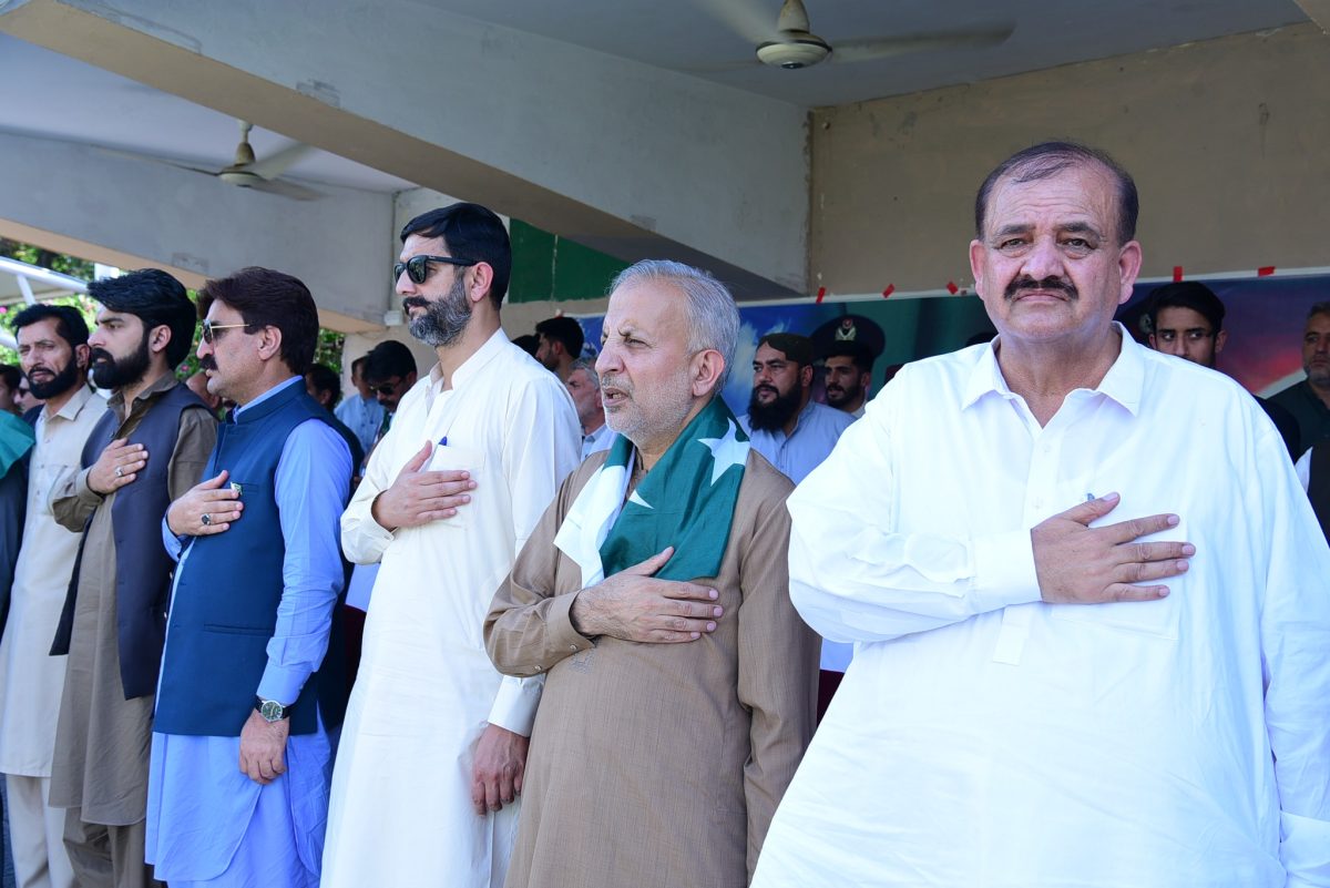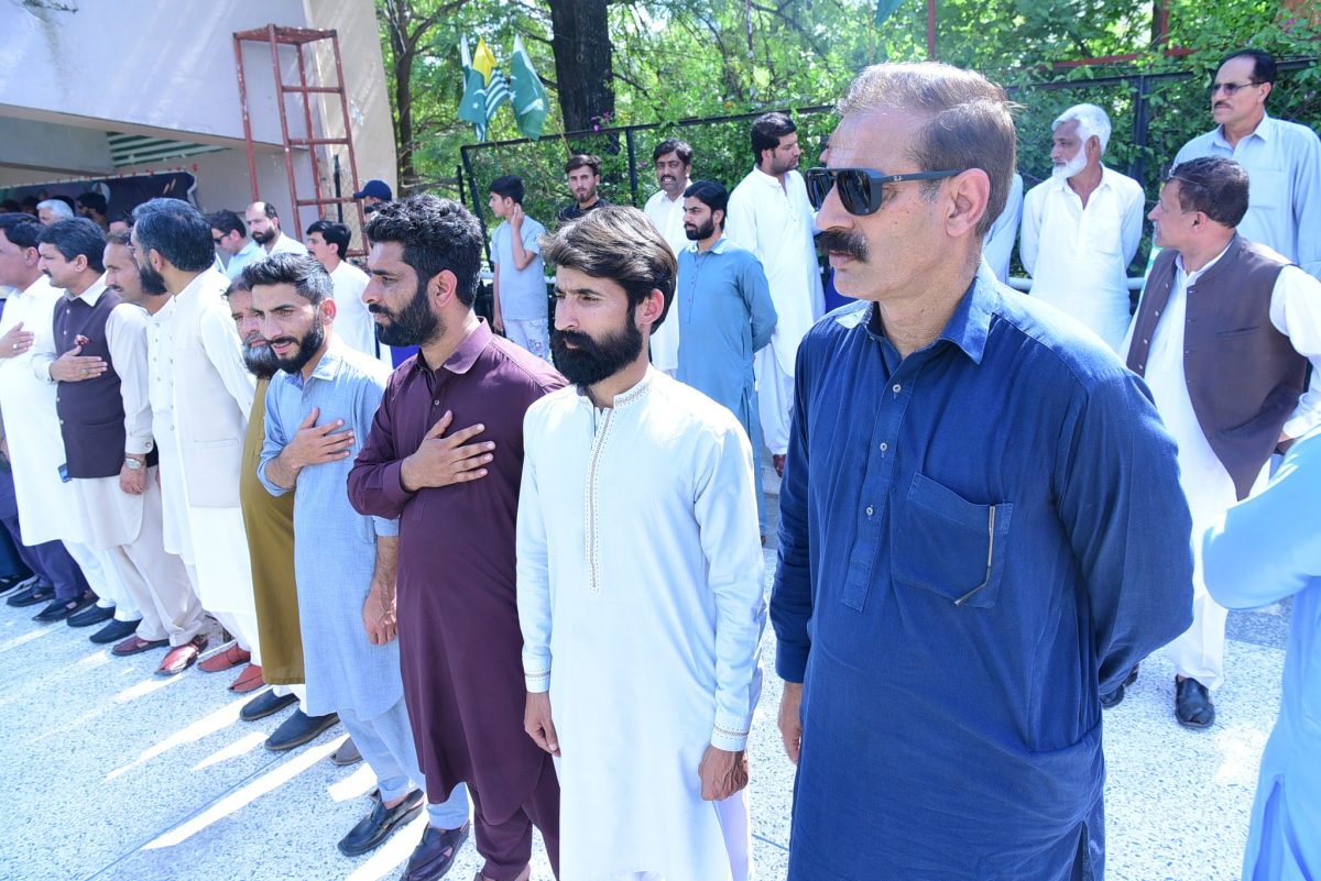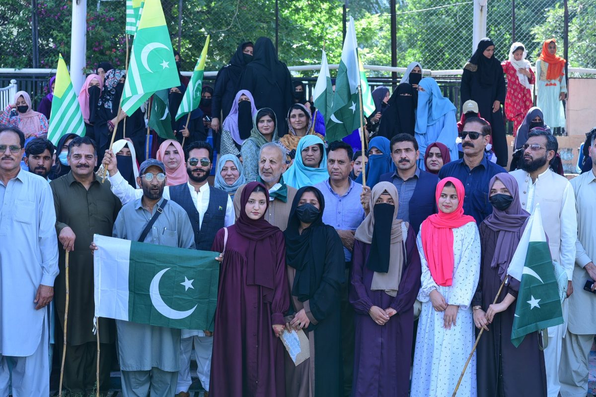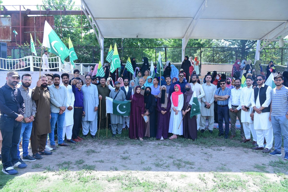 The rally, marked by passionate chants and national spirit, was led by Vice-Chancellor Prof. Dr. Nadeem Haider Bukhari, Registrar Prof. Dr. Saadat Hanif Dar, and Director of Students Affairs Dr. Sharjil Saeed, alongside a large number of senior faculty members, administrative staff, and enthusiastic students.