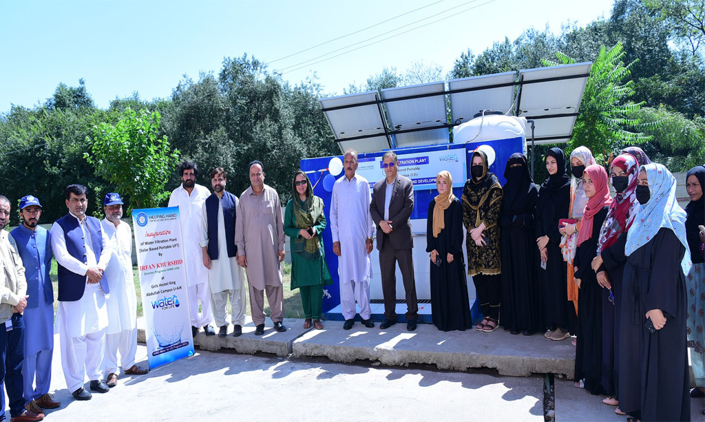 Vice-Chancellor Prof. Dr. Muhammad Kaleem Abbasi, in collaboration with Mr. Irfan Khursheed, Global Director Program of Helping Hand for Relief and Development (HHRD) USA, and Mr. Saleem Mansoori, Country Director of HHRD, inaugurated a state-of-the-art Solar-Powered Portable Ultra Filtration (UF) system at the Girls Hostel, King Abdullah Campus, University of Azad Jammu and Kashmir (UAJK).